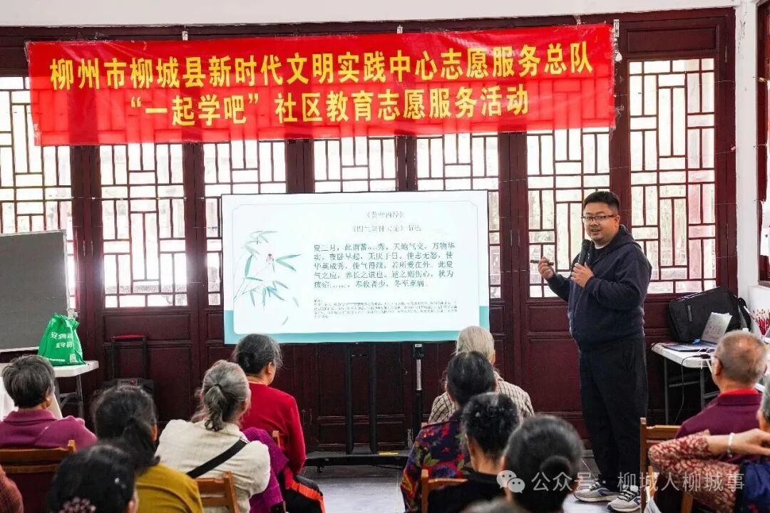 活动由柳城县新时代文明实践中心主办,柳城县委宣传部、县卫健局、县老干局协办,以“银龄沐书香,讲堂传温情”为主题,把阅读分享、健康科普、公益体检相结合,让老年朋友老有所学、老有所乐。