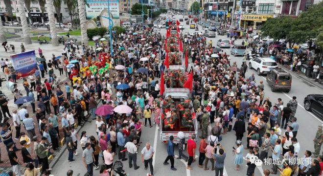 在柳城县举行的2023年秋季新兵欢送巡游活动中,新兵分成几组,乘坐巡游车辆,从县人武部沿既定路线出发。沿路的送兵队伍有序地站在道路两侧,给予新兵最美好的祝福和最暖心的嘱托。