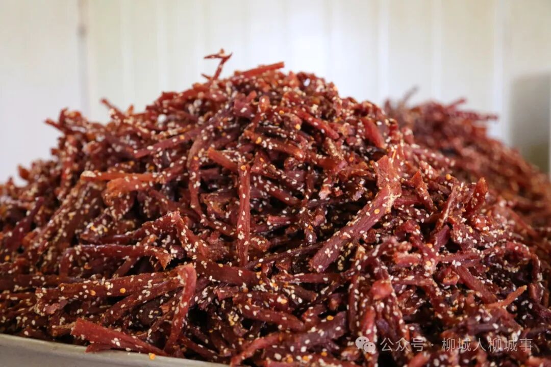 “我们挑选猪肉不仅要新鲜,还要精选300斤以上生猪的猪后腿肉。猪后腿肉质饱满、紧实,纹理分明,最适合做猪肉条。”沈火强说,工艺上也有讲究,将按配比调制的酱料加入到肉里腌制1个小时以上,用明炉炭火烘烤6小时再过一次油锅,控油后进行冷却杀菌,这样做出来的猪肉条干而不柴。