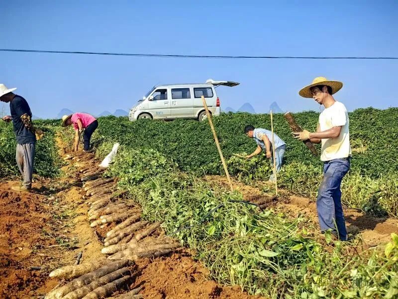 如今,韦福龙不仅自己种植淮山,还辐射带动周边的10多户村民一起种植淮山,目前社冲乡的淮山种植面积达到3000多亩,种植农户年均收入超过5万元。眼下,每天都有不少客商慕名前来订货。“这个品种的淮山口感非常好,经得煮,也不会起糊,今天收完这批货有1万多斤,连夜拉去四川攀枝花,另外有部分广东老板也定货了,他们都在催要货。”客商韦先生说。