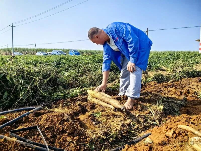 韦福龙说,前些年自己一直在外打工,2019年回到家乡后,发现家乡的土壤非常松软,很适合种植淮山,本地人过去也种植过淮山,而且这里种出的淮山含有丰富的微量元素,是本地的特色土货。但后来很多村民都外出打工了,种淮山的人越来越少,全乡种植淮山的规模不到千亩。韦福龙看准了这里的商机,于是租用村民30多亩土地种植淮山,开始创业,发展的势头迅猛,几年时间就扩大到100多亩。“我是个新农人,一方面在家门口就可以创业,一方面也可以照顾家里的父母。”韦福龙说。