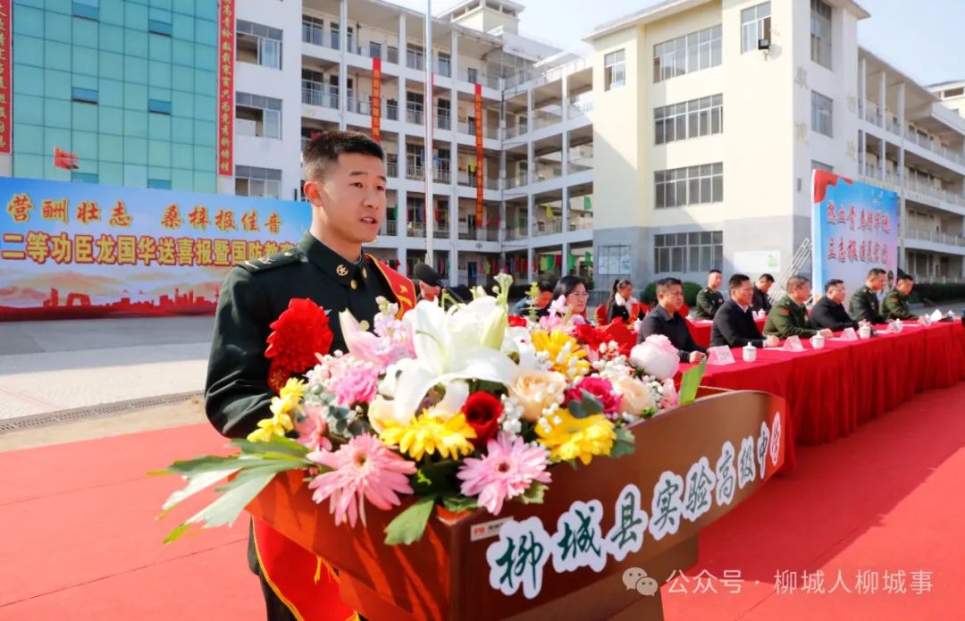 柳城县实验高级中学王诗俨说:“龙国华学长为柳城、为我们学校争光,听了他的事迹演讲,我非常感动,向他学习、向他致敬,有朝一日,希望我也可以穿上军装保家卫国。”