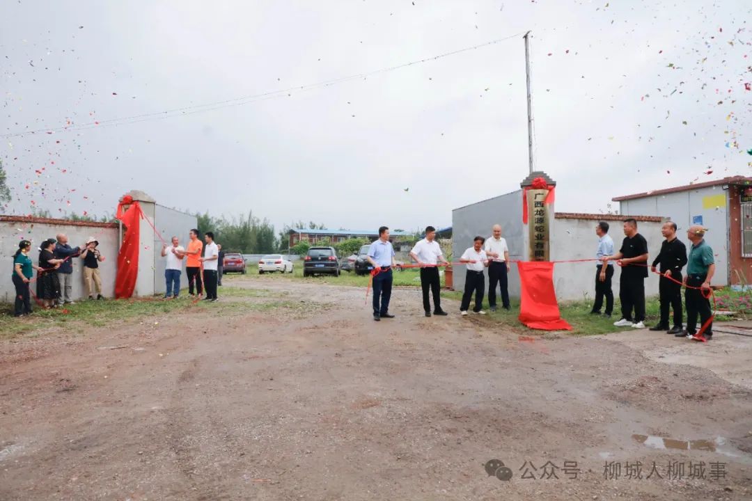 开工仪式前,参加活动人员为广西粮小可科技有限公司、广西龙源蛇业有限责任公司揭牌。