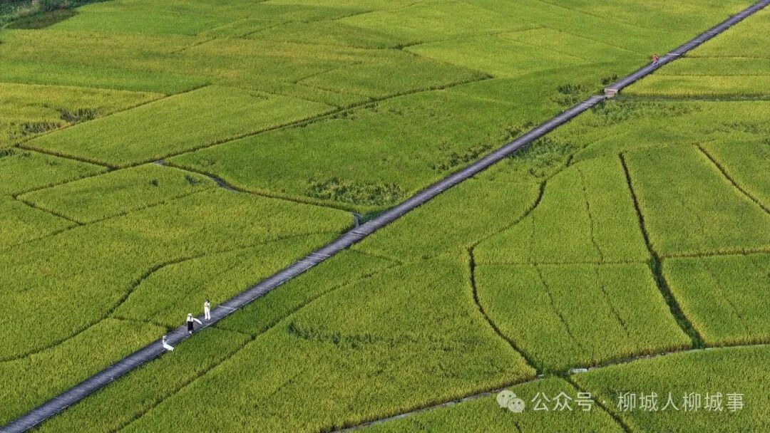 10月13日,在素有“桂北粮仓”美誉的柳城县古砦仫佬族乡,成片的稻谷逐步进入成熟期,与山脉、道路、村落构成一幅秀丽的田园画卷,吸引周边游客前来游玩。