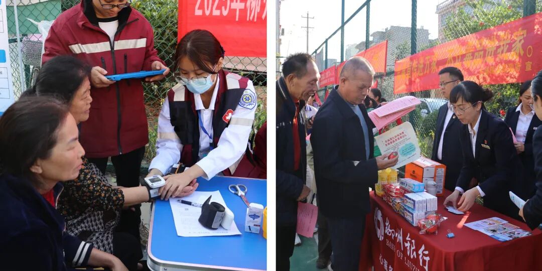 暖场表演结束后,各项特色环节同步开展。敬老关爱服务区内,大埔卫生院医生提供血压血糖检测、慢病咨询、中医理疗等健康义诊服务;各单位、部门工作人员开展反诈安全防范、社保养老政策、文明社风、民族团结等宣传。
