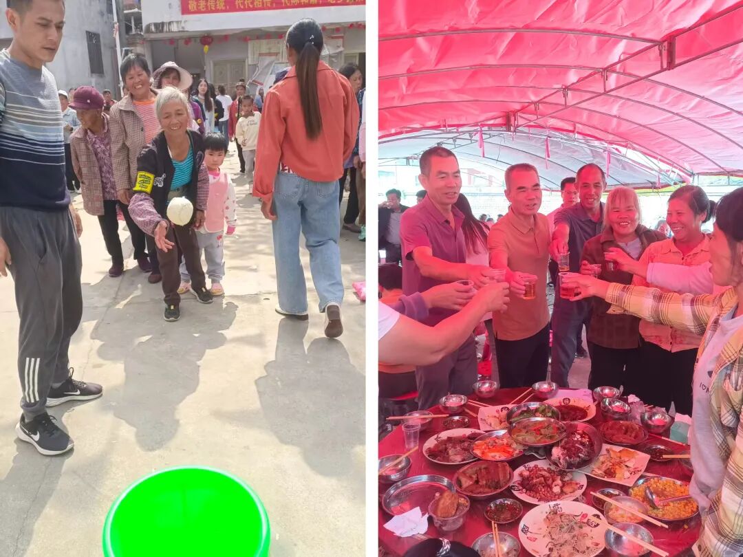 下午,全村百家宴将节日气氛推向高潮。村民们齐聚一堂,共享丰盛的家常菜肴,畅叙乡情。老人们与年轻一代围坐共餐,彼此交流,场面温馨而热闹。此次活动不仅让长者感受到社会的关爱,也进一步增强了全村的凝聚力。