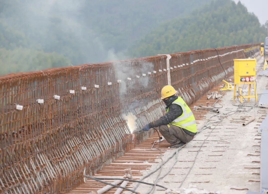 在融江特大桥附近的3号预制梁场,工人们忙着浇灌预制梁;在凉水山桥施工现场,工人抓紧焊接桥面围栏钢筋、打磨桥梁围栏模块,全线建设有序推进。目前,罗鹿高速整体施工进度已完成70%,为2026年竣工通车打好基础。