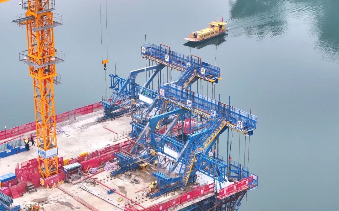 近日,在柳州市柳城县融江特大桥施工现场,80多名工人在江面的三个桥墩上抓紧施工。融江特大桥全长1157米,是罗鹿高速项目控制性工程之一。“目前,墩施工进度已完成75%,预计明年7月主体和龙。”罗鹿高速公路二标段项目负责人吴桐介绍说。