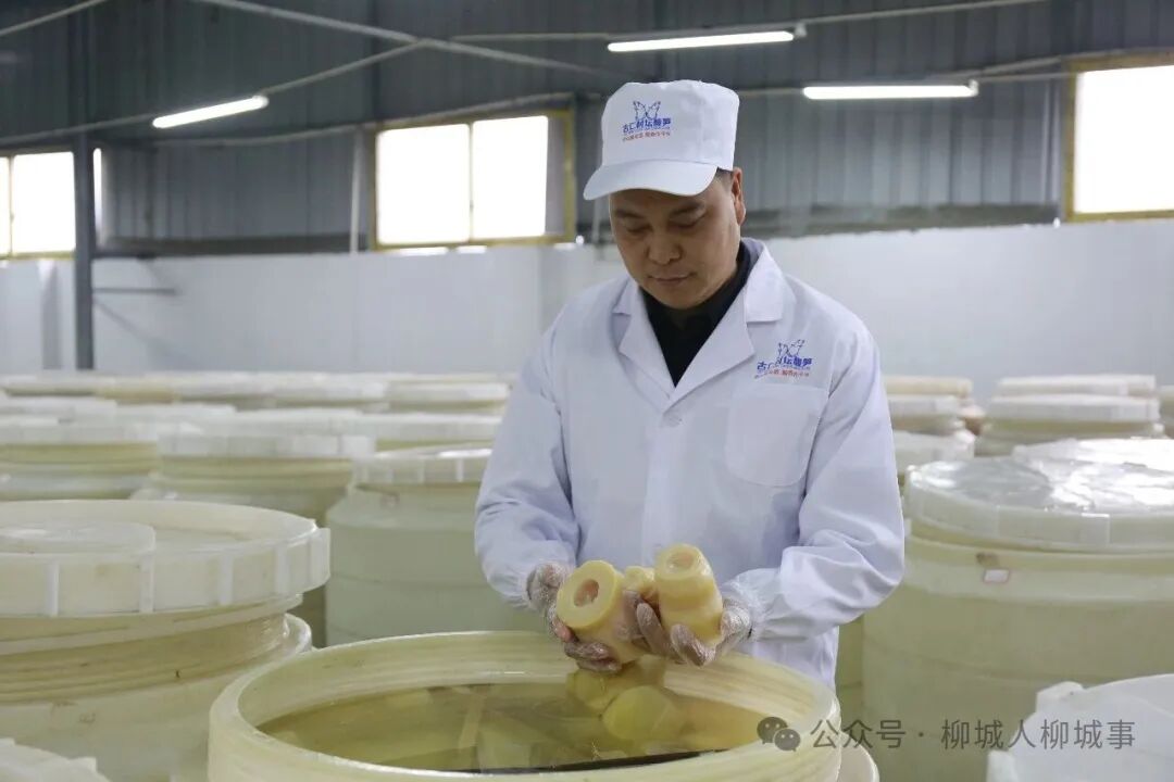 他投资160余万元,开办起占地4000多平方米的酸笋加工厂,购入食品级腌渍桶800余个,成立了柳城县兴客农副产品销售有限公司和柳城县强盛种植专业合作社,专注于古法腌制酸笋、酸豆角等特色农副产品,并注册了“古仁村坛”酸笋商标。
