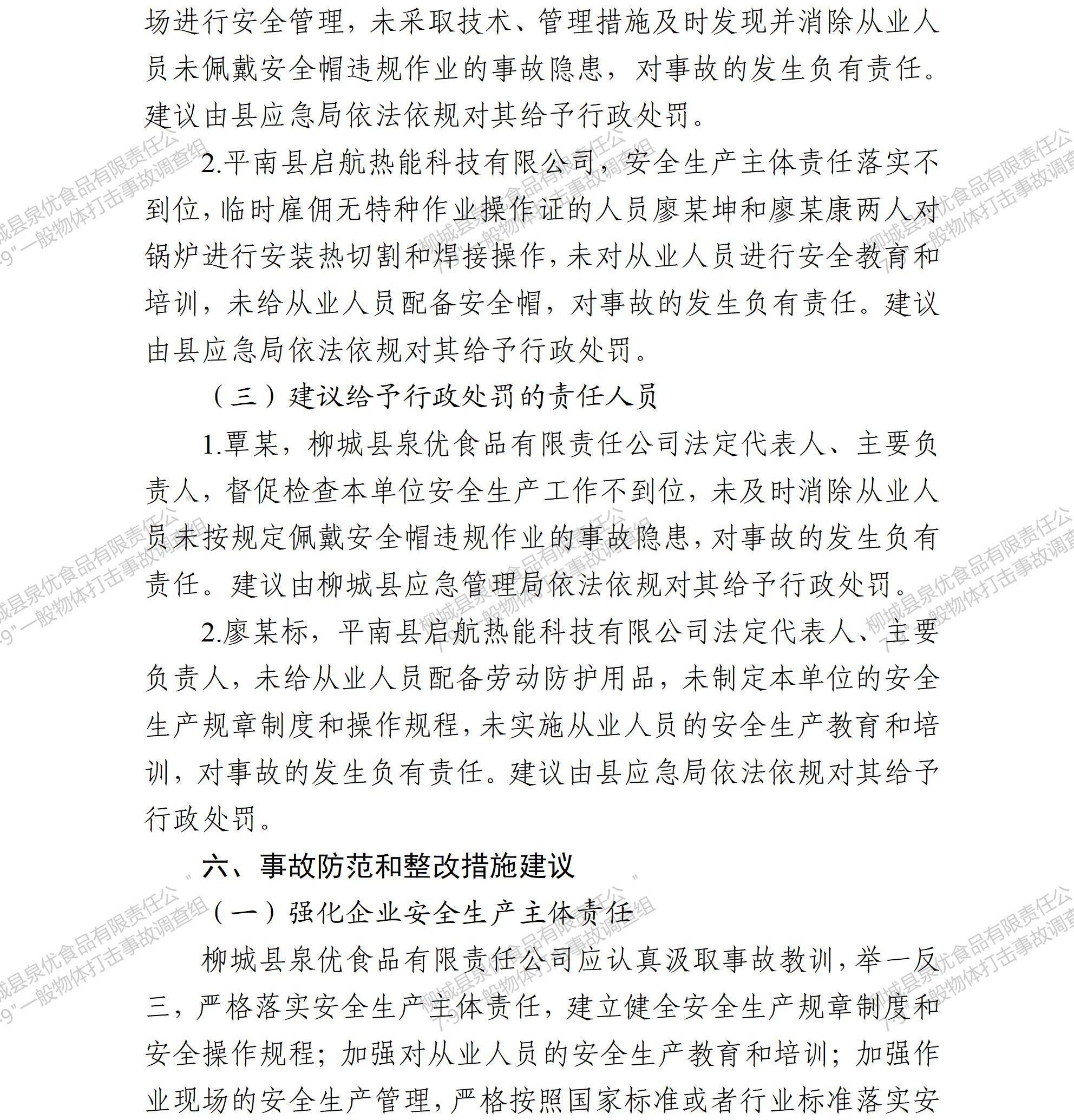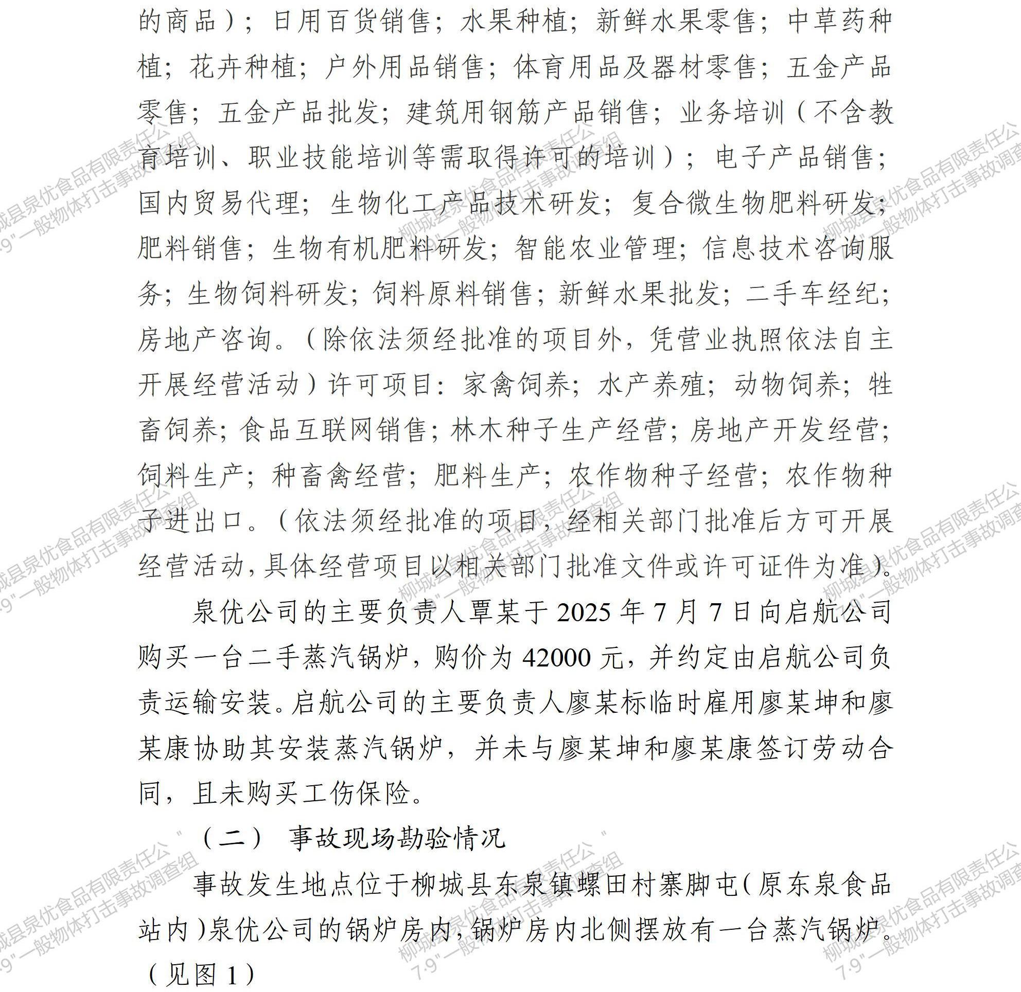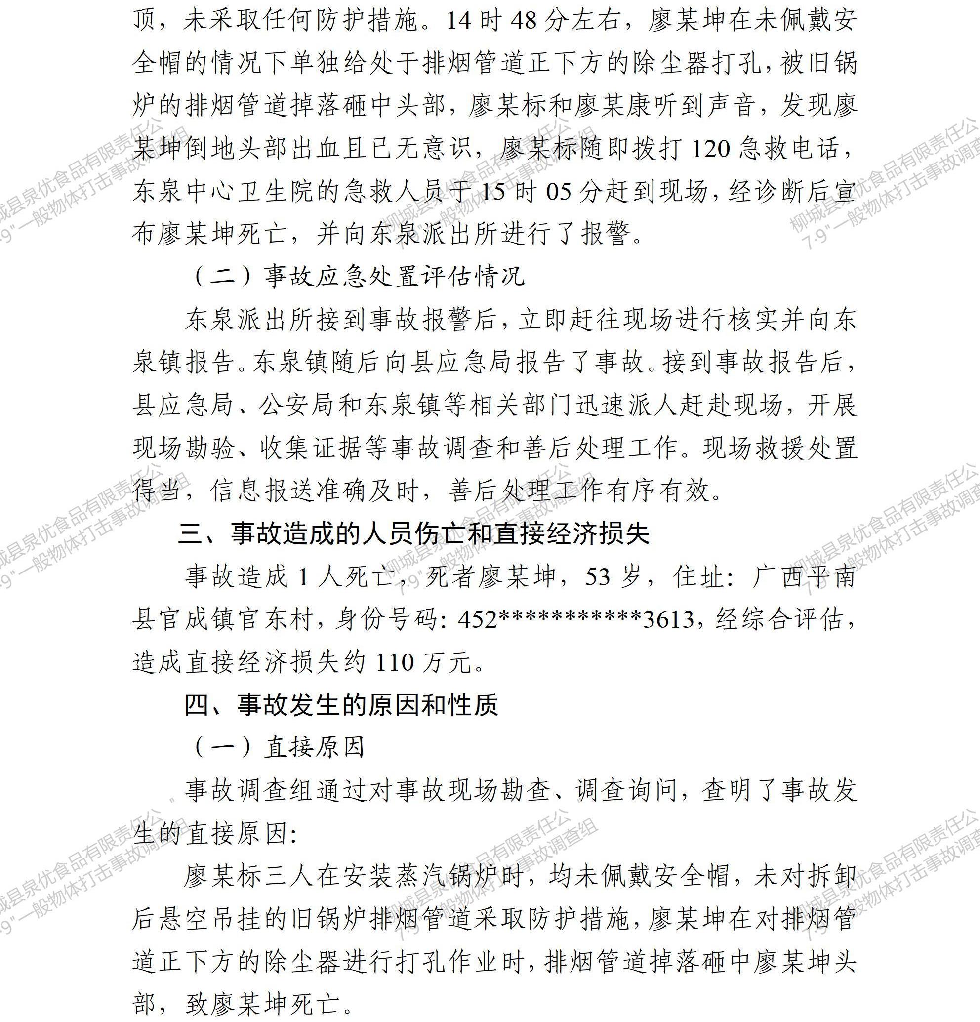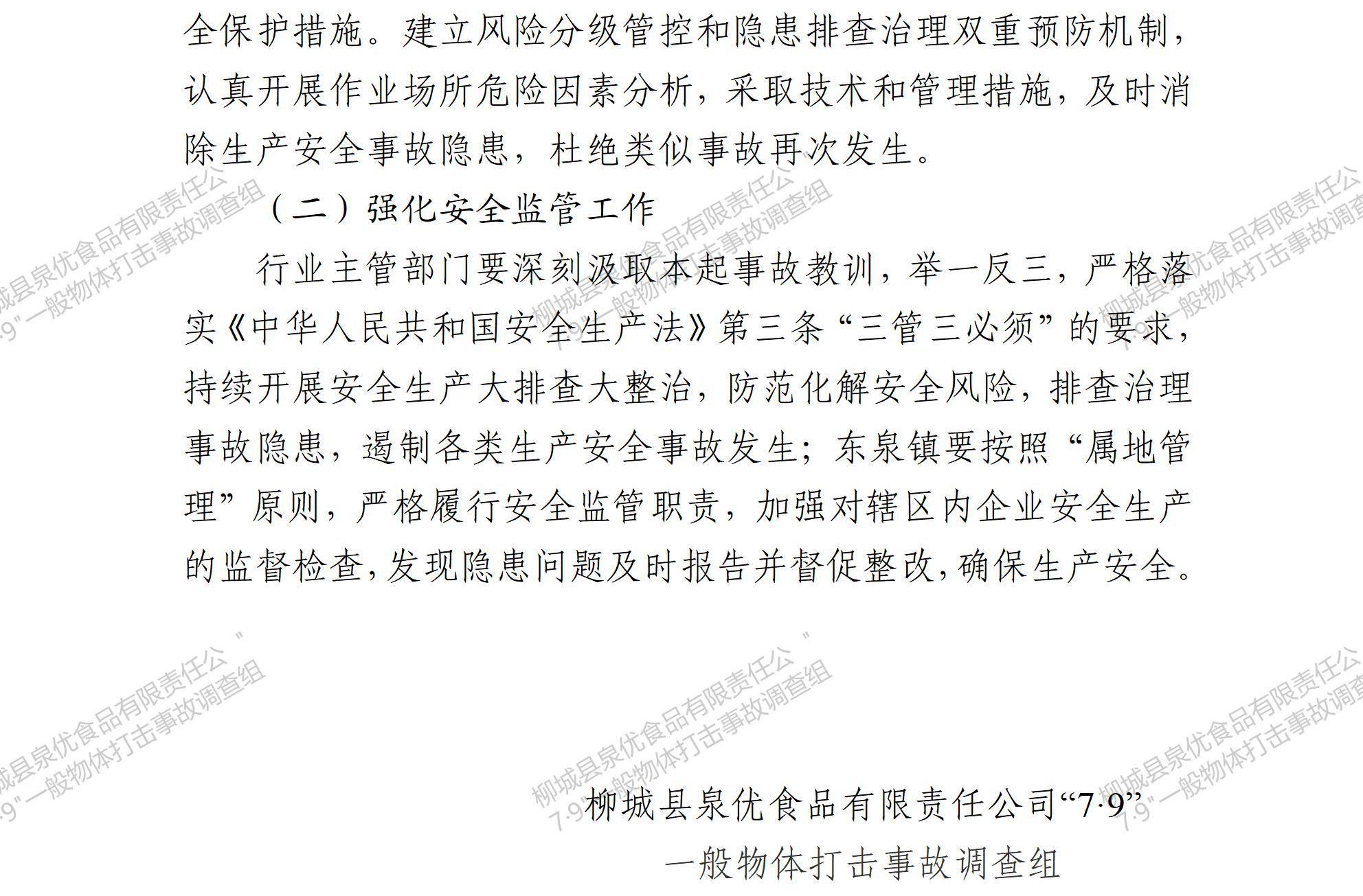 柳城县泉优食品有限责任公司“7·9”一般物体打击事故调查报告