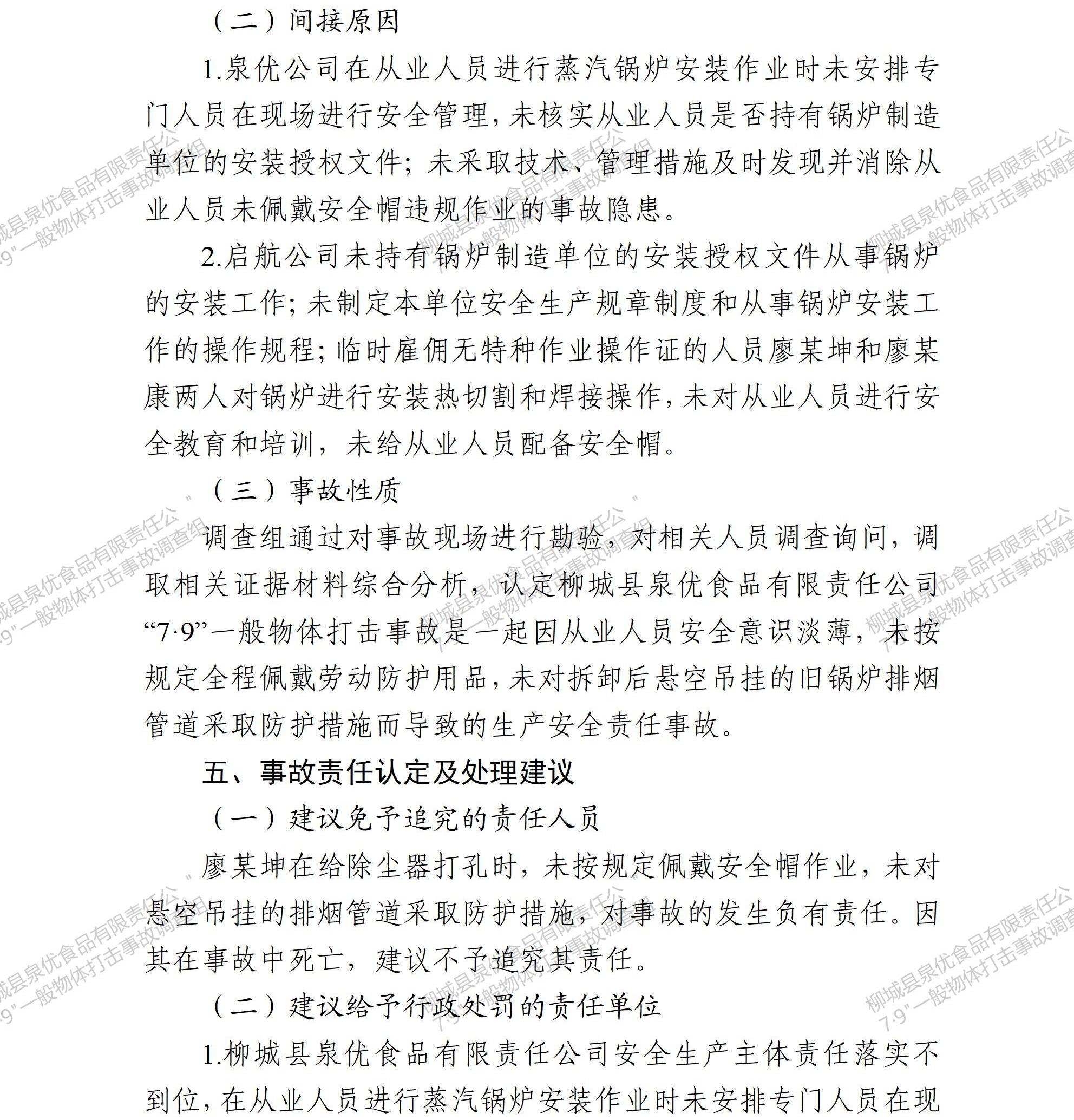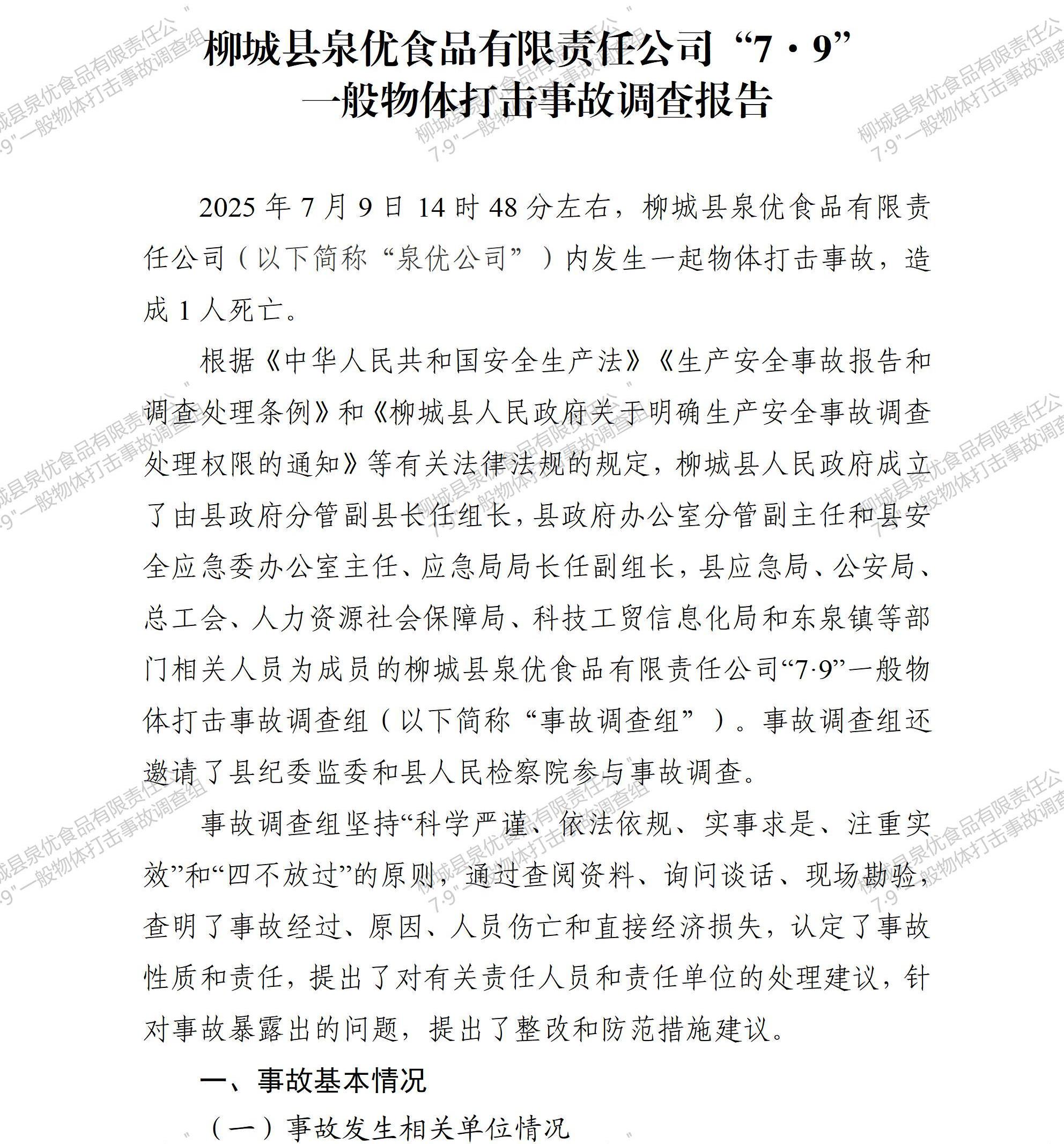 来源: 柳城县泉优食品有限责任公司“7·9”一般物体打击事故调查组