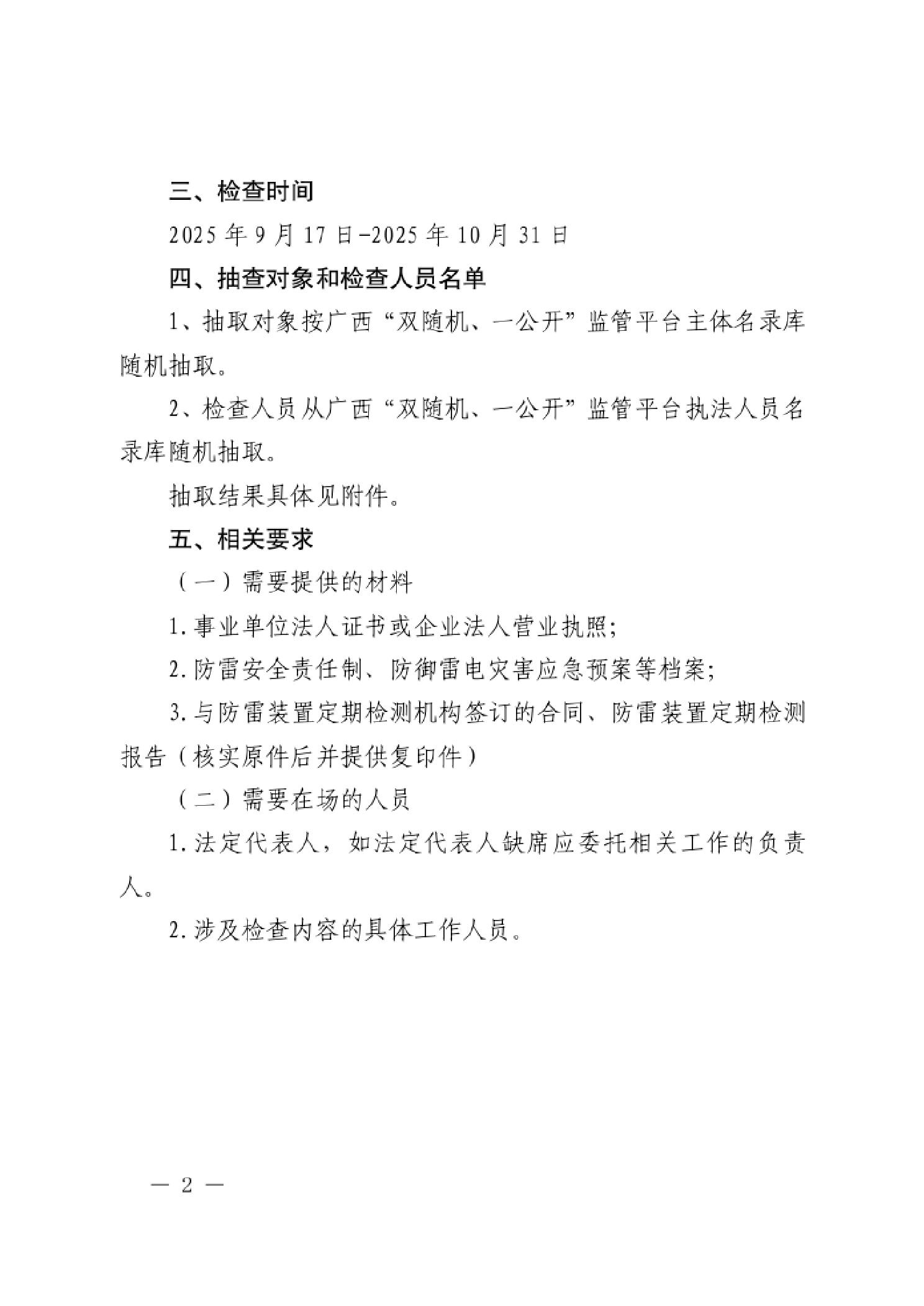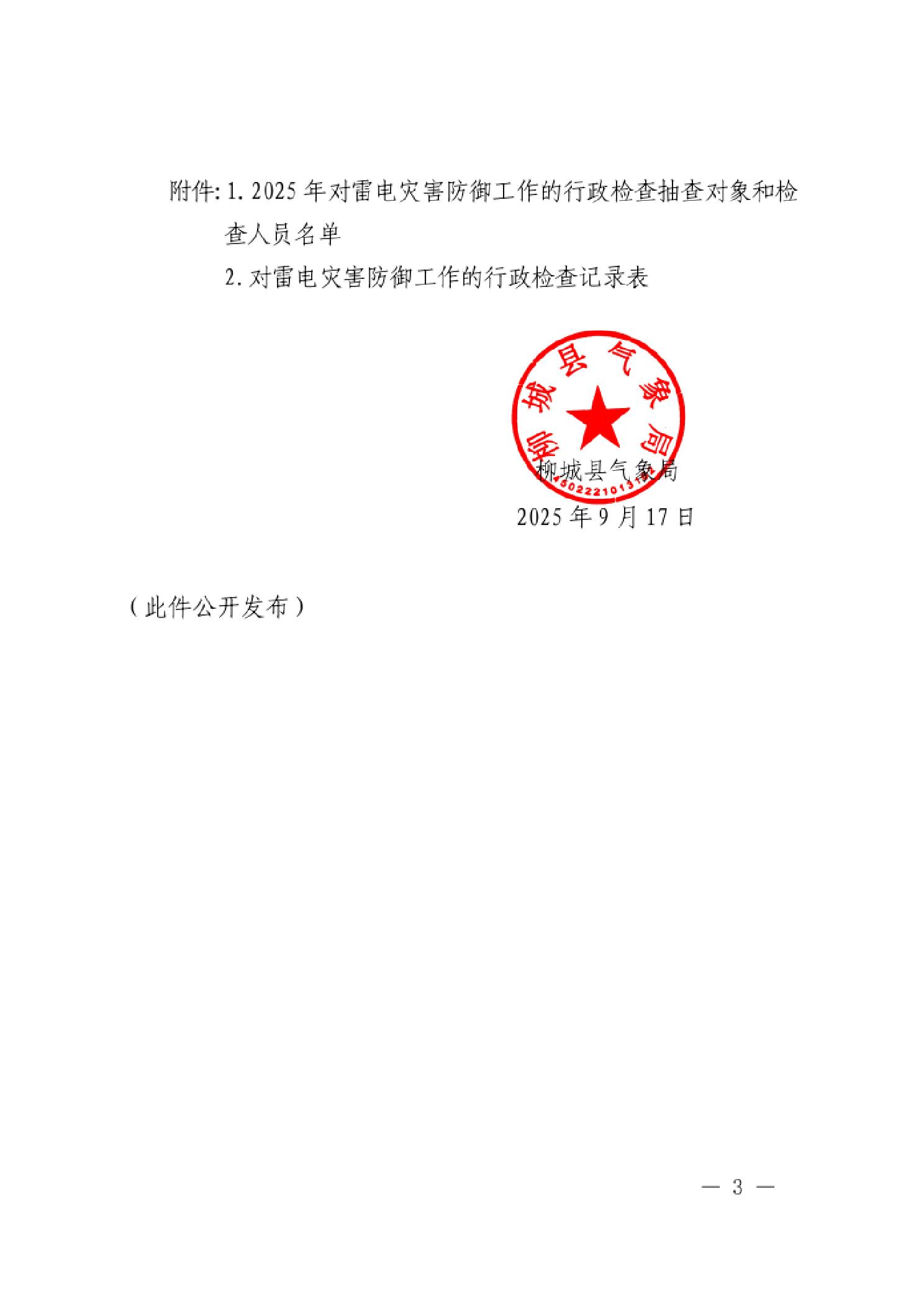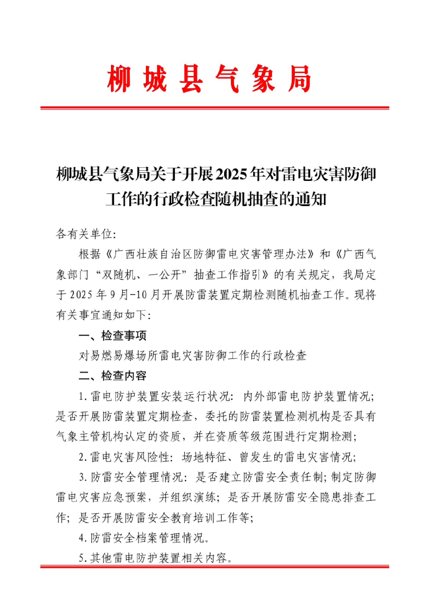 柳城县气象局关于开展2025年对雷电灾害防御工作的行政检查随机抽查的通知