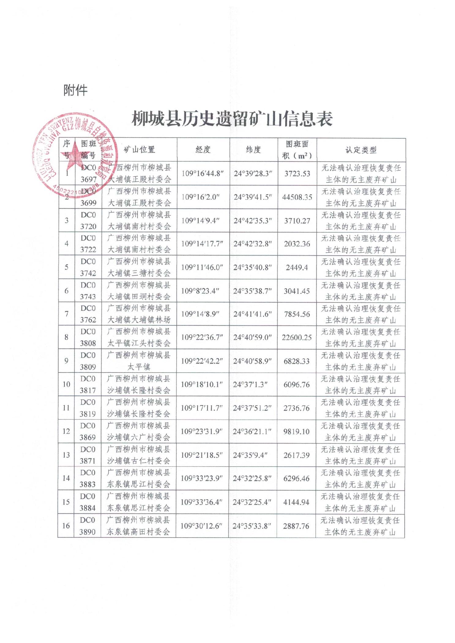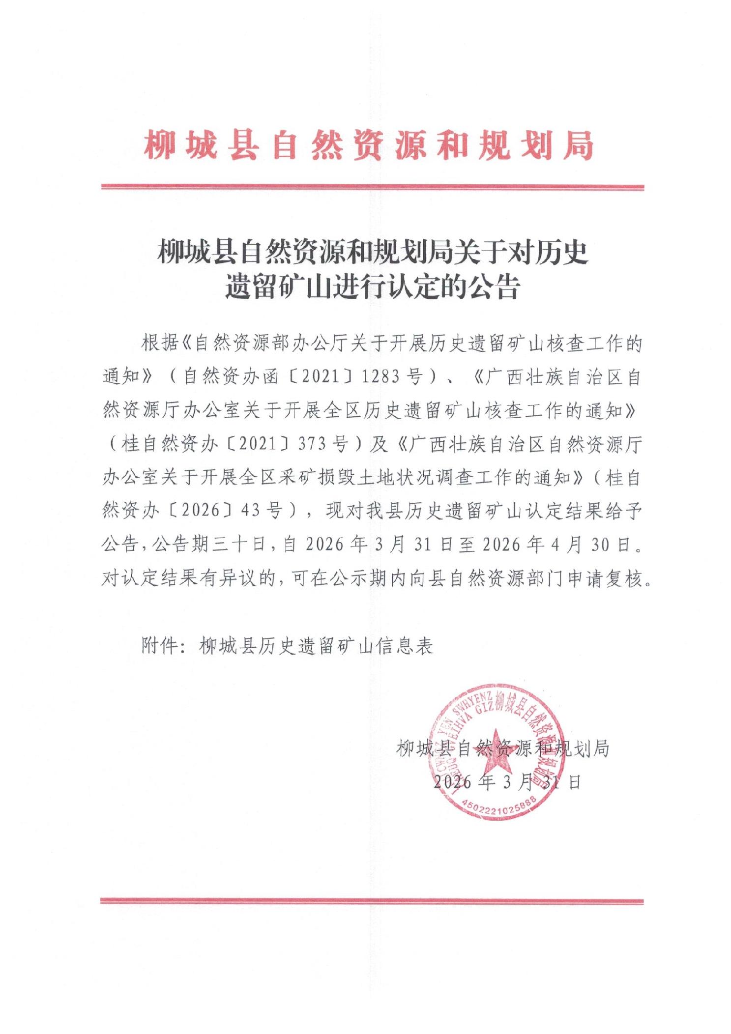 柳州市柳城县自然资源和规划局关于对历史遗留矿山进行认定的公告