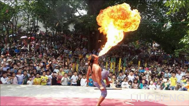 民族风情表演:梅花高桩舞狮(由中国南师冠军,国家A级狮队表演)、烈火烧身、赤脚踩钢刀、踩玻璃、民族歌舞、小猪高台跳水表演。